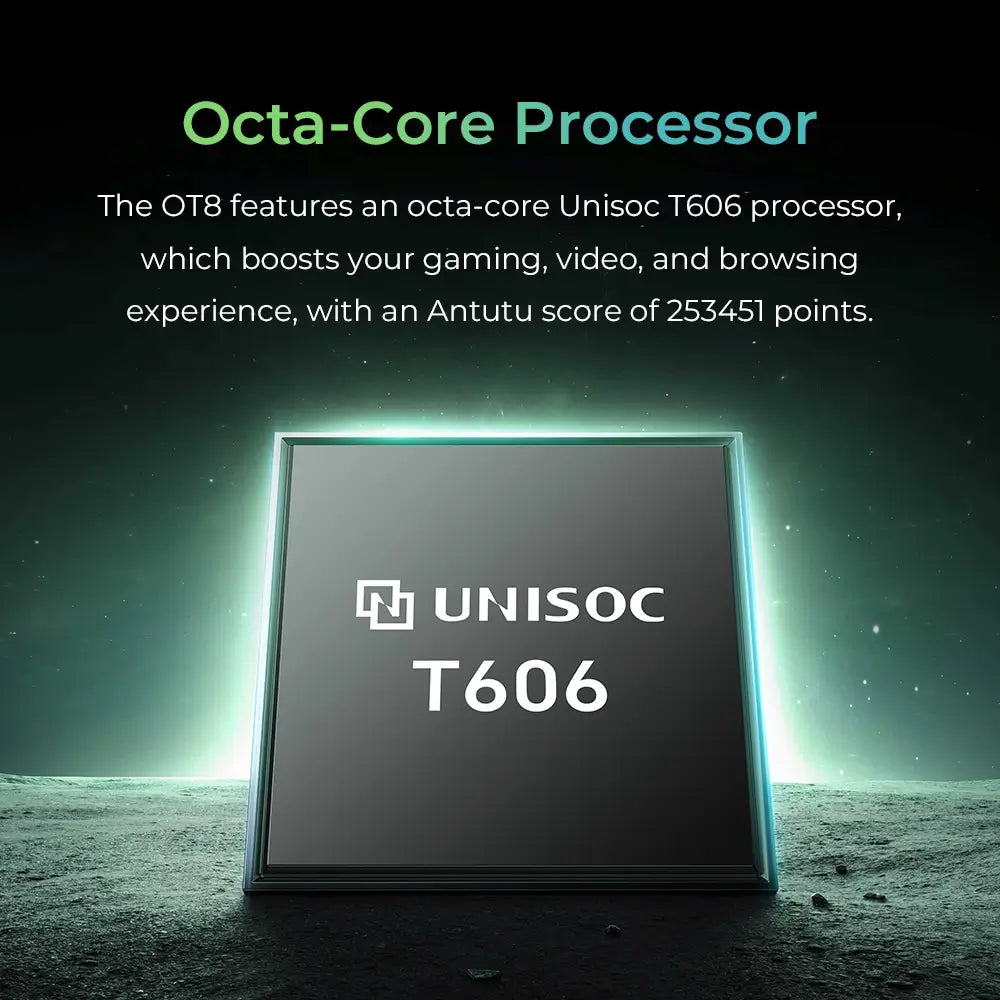 The OT8 features an octa-core Unisoc T606 processor, which boosts your gaming, video and browsing experience, with an Antutu score of 253451 points.