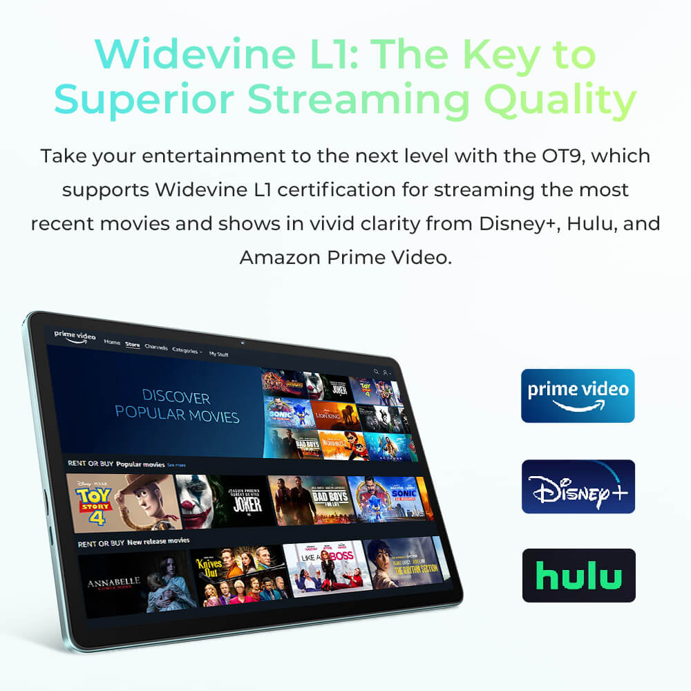 OT9 Smart Tablet Widevine L1 Pantalla HD de 11 pulgadas Batería de 8000mAh Android 14