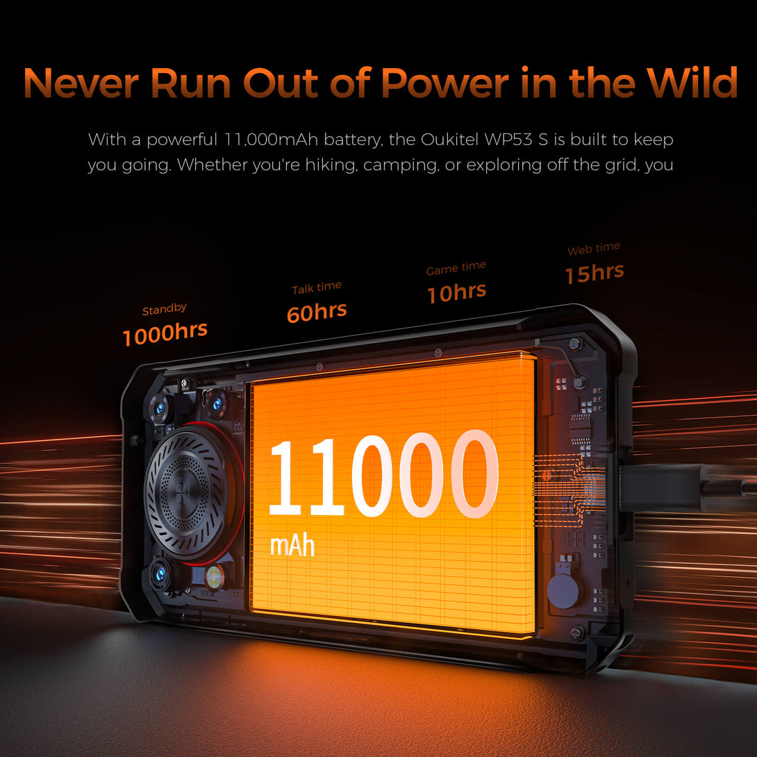 Oukitel WP53 S 4G Rugged Phone 6.52'' FHD+ Display 11000mAh Big Battery 50MP Camera Android 15(4GB+128GB NFC)